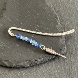 A sparkly Preciosa Crystals and Tibetan Screwdriver Charm bookmark in Sapphire AB and Light Sapphire AB blue. Supplied in a white organza gift bag.