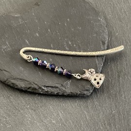 A sparkly Preciosa Crystals and Tibetan Flower Dress Charm bookmark in Deep Tanzanite AB purple. Supplied in a white organza gift bag.
