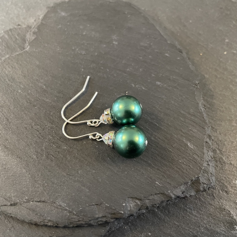Green bauble earrings on sterling silver earwires. Approx drop length 3.3cms (including earwire). Supplied in a white organza gift bag.