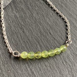 Handcrafted sterling silver and faceted peridot with sterling silver belcher chain. Length is 18 1/2' (approx). Packed in a jewellery box.