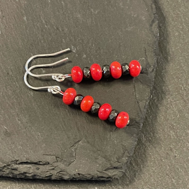 Sterling silver and Coral and Hematite earrings. Approx drop length (including earwires) 4.2cms. Supplied in a white organza bag.