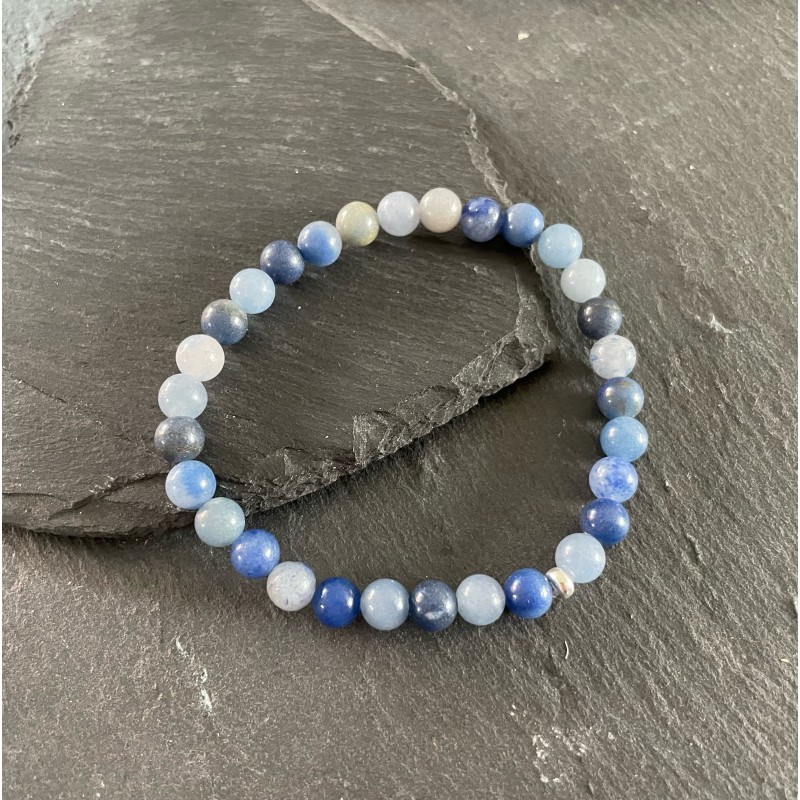 Blue Aventurine stretchy bracelet. Fits wrist size 7". Supplied in a white organza bag.