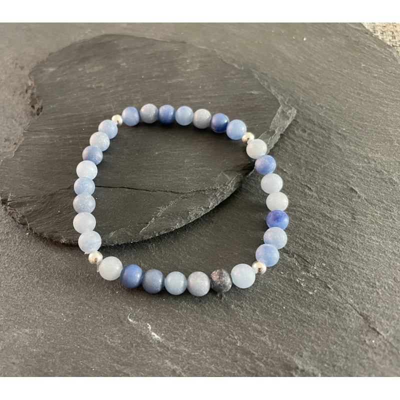 Blue Aventurine Frosted stretchy bracelet, bead size approx 6mm. Fits wrist size 7". Supplied in a white organza bag.