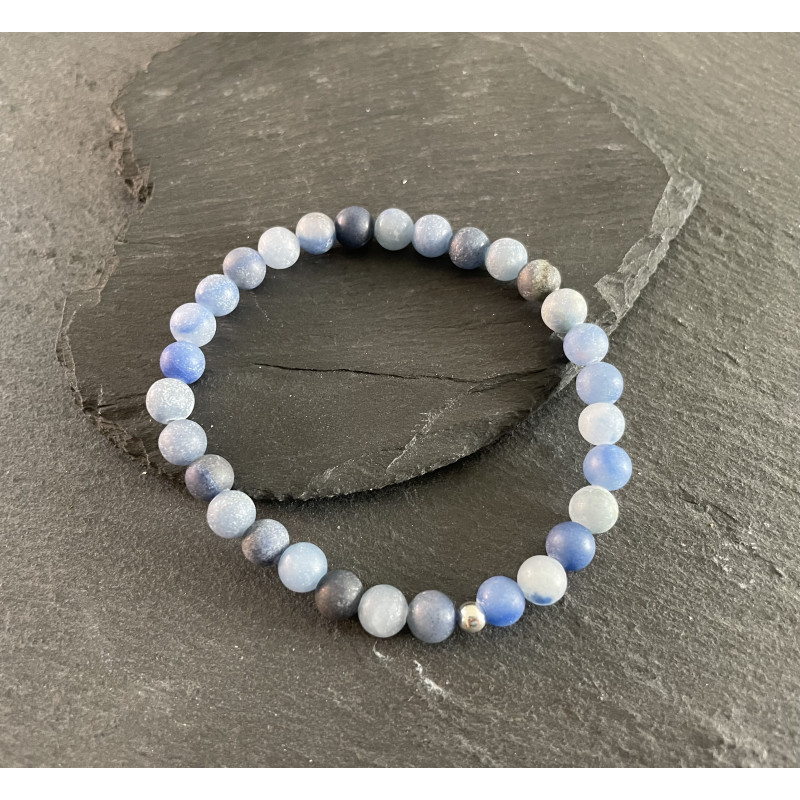Blue Aventurine Frosted stretchy bracelet, bead size approx 8=6mm. Fits wrist size 6 3/4". Supplied in a white organza bag.