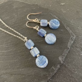Sterling silver and Kyanite necklace with Sterling Silver 18" belcher chain and earrings. Necklace approx drop length 3.7cms and earrings (including earwires) 4cms. Supplied in a white organza bag.