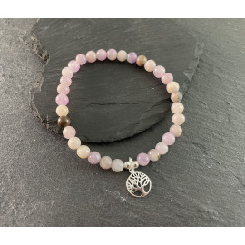 Lavender Amethyst and Sterling Silver Domed Tree Charm stretchy bracelet, bead size approx 6mm. Fits wrist size 7". Supplied in a white organza bag.