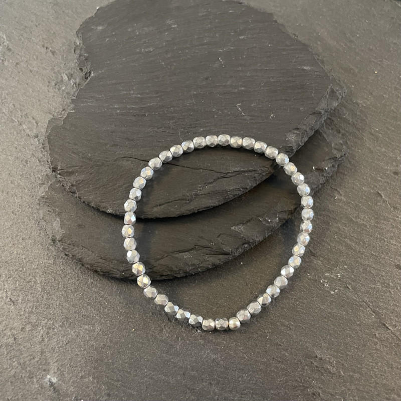 Preciosa Crystal stretchy - silver sparkle colour beads approx size 3 x4mm. Fits wrist size approx 7". Supplied in a white organza bag.
