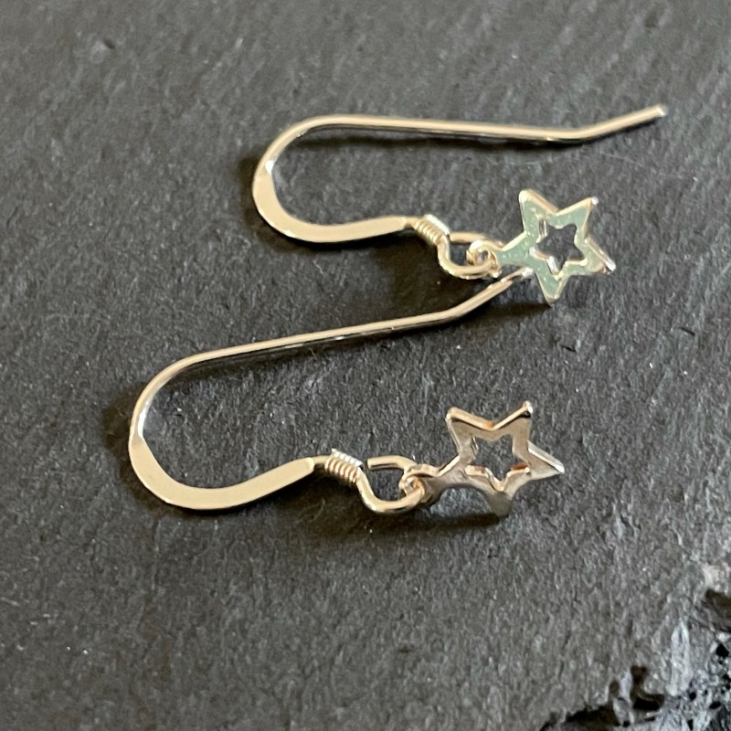A Sterling Silver pair of earrings - tiny star. Drop length approx 1.8 cms (including earwires). Supplied in a white organza gift bag.