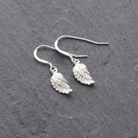 A Sterling Silver pair of earrings - Angel Wing Fluffy. Drop length approx 3cms (including earwires). Supplied in a white organza gift bag.