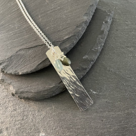 Handcrafted sterling silver textured rectangle and faceted tourmaline and sterling silver mini star pendant with 18" sterling silver belcher chain. Length is 5.6cms (approx). Packed in a jewellery box.