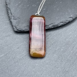 terling silver and Pinky-Brown fused glass pendant with a sterling silver 18" belcher chain. Approx drop length (including bail) 6.5cms. Supplied in a white organza bag.