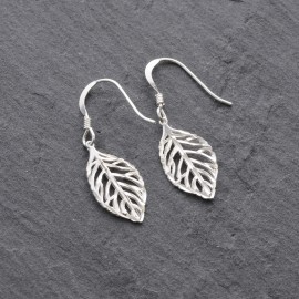 A Sterling Silver pair of earrings - Leaf. Drop length approx 3.2cms (including earwires). Supplied in a white organza gift bag.