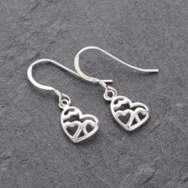 A Sterling Silver pair of earrings - Triple Heart. Drop length approx 2.8 cms (including earwires). Supplied in a white organza gift bag.