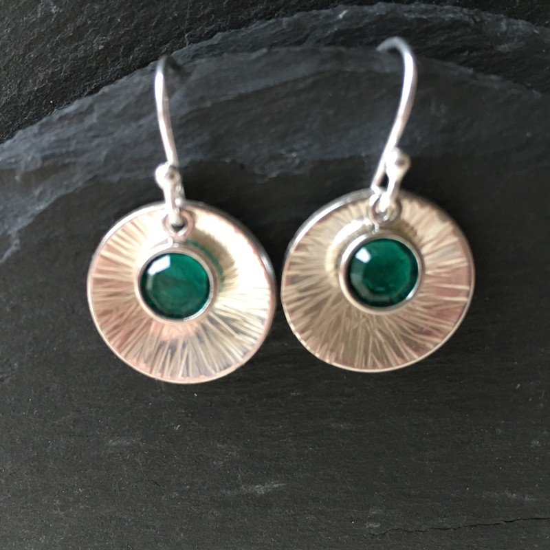 Swarovski and Textured Sterling Silver Disc Earrings Emerald