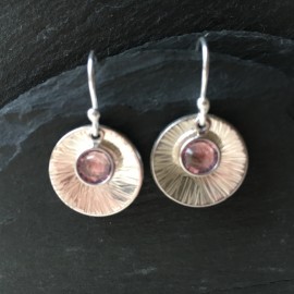A stunning pair of handmade Sterling Silver and Swarovski Earrings using sparkly Crystallised Swarovski channel charms in Light Amethyst on sterling silver earwires with a textured domed disc. Drop length approx 2.8cms (including earwires). Light Amethyst is June birthstone colour. Supplied in a white organza gift bag.