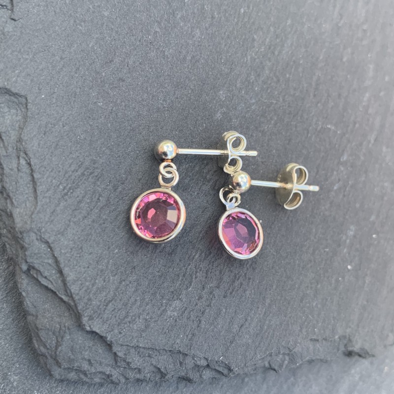 A stunning pair of handmade Sterling Silver and Swarovski Stud Earrings using sparkly Crystallised Swarovski channel charms in Rose. Drop length approx 1.4cms (including earwires). Light Sapphire is October birthstone colour. Supplied in a white organza gift bag.