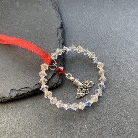 A stunning handmade Tibetan Candle Charm Christmas Decoration using sparkly Preciosa Crystal with red organza ribbon. Size 4.5cms (excluding ribbon). Supplied in a white organza gift bag.