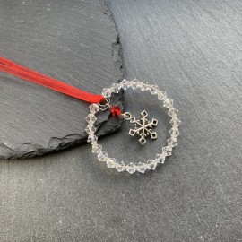 A stunning handmade Tibetan Snowflake1 Charm Christmas Decoration using sparkly Preciosa Crystal with red organza ribbon. Size 4.5cms (excluding ribbon). Supplied in a white organza gift bag.