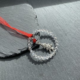 A stunning handmade Tibetan Tree1 Charm Christmas Decoration using sparkly Preciosa Crystal with red organza ribbon. Size 4.5cms (excluding ribbon). Supplied in a white organza gift bag.