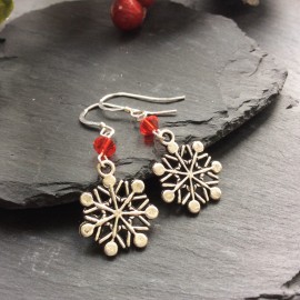Sterling Silver earwires, Swarovski crystal or Preciosa Crystalwith a Tibetan Snowflake (5) charm pair of earrings. Supplied in a white organza gift bag.