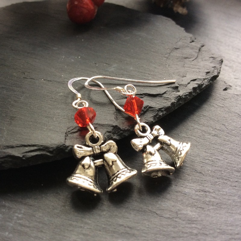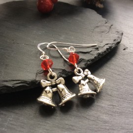 Sterling Silver earwires, Swarovski crystal or Preciosa Crystal with a Tibetan Bells charm pair of earrings. Supplied in a white organza gift bag.