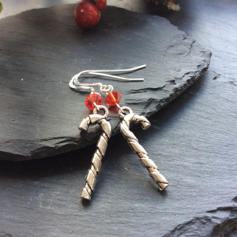 Sterling Silver earwires, Swarovski crystal or Preciosa Crystal with a Tibetan Candy Cane charm pair of earrings. Supplied in a white organza gift bag.