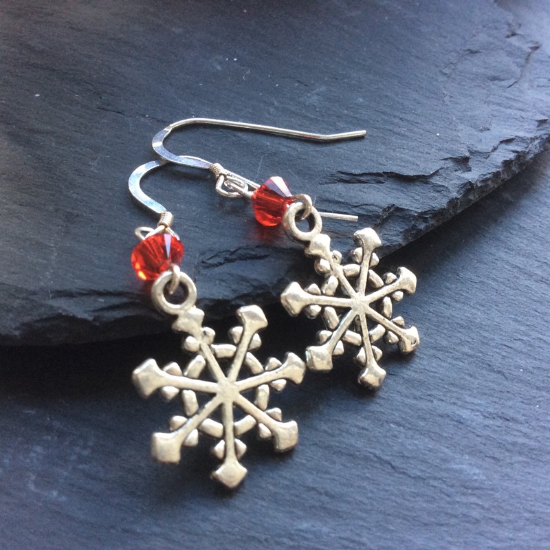 Sterling Silver earwires, Swarovski crystal or Preciosa Crystal with a Tibetan Snowflake (4) charm pair of earrings. Supplied in a white organza gift bag.