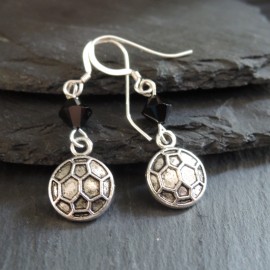 Sterling Silver earwires, Swarovski crystal or Preciosa Crystal with a Tibetan Football charm pair of earrings. Supplied in a white organza gift bag.