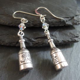 Sterling Silver earwires, Swarovski crystal or Preciosa Crystal with a Tibetan Wine Bottle charm pair of earrings. Supplied in a white organza gift bag.